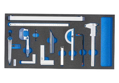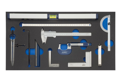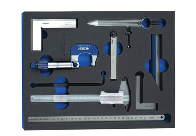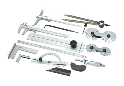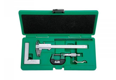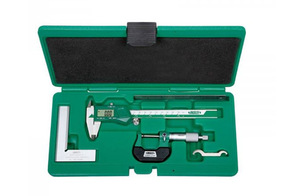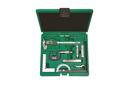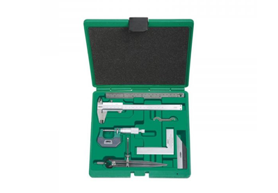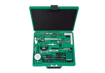 Measuring tool sets with assorted instruments including calipers, micrometers, indicators & more